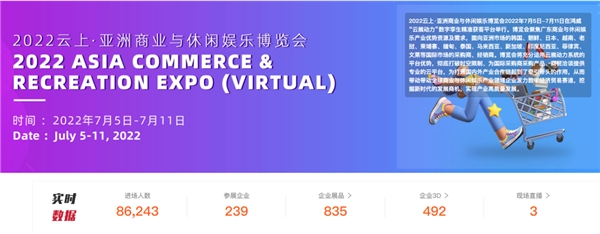 7月5日,由廣州市貿(mào)促會指導(dǎo),廣東鴻威國際會展集團有限公司主辦的2022云上·亞洲商業(yè)與休閑娛樂博覽會在“云展動力——數(shù)字孿生精準獲客平臺”正式開幕。同期舉辦了“廣州名品·世界巡展”活動,20家企業(yè)在廣州市貿(mào)促會的指引組織下抱團亮相,展示廣州休閑與娛樂產(chǎn)業(yè)領(lǐng)域的強大品牌影響力,參與競技全球數(shù)字貿(mào)易創(chuàng)新發(fā)展商機!